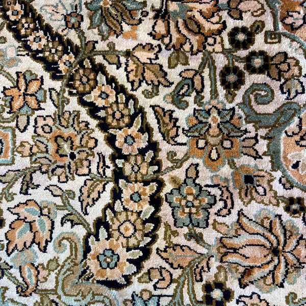 ペルシャ・クムシルク絨毯 27年前購入「父から結婚のお祝いに貰ったシルクの絨毯を27年ぶりにクリーニングをしてもらいました。赤ワインのシミや食べこぼしなどをそのままにしていた酷い状態の絨毯を蘇らせていただきました。