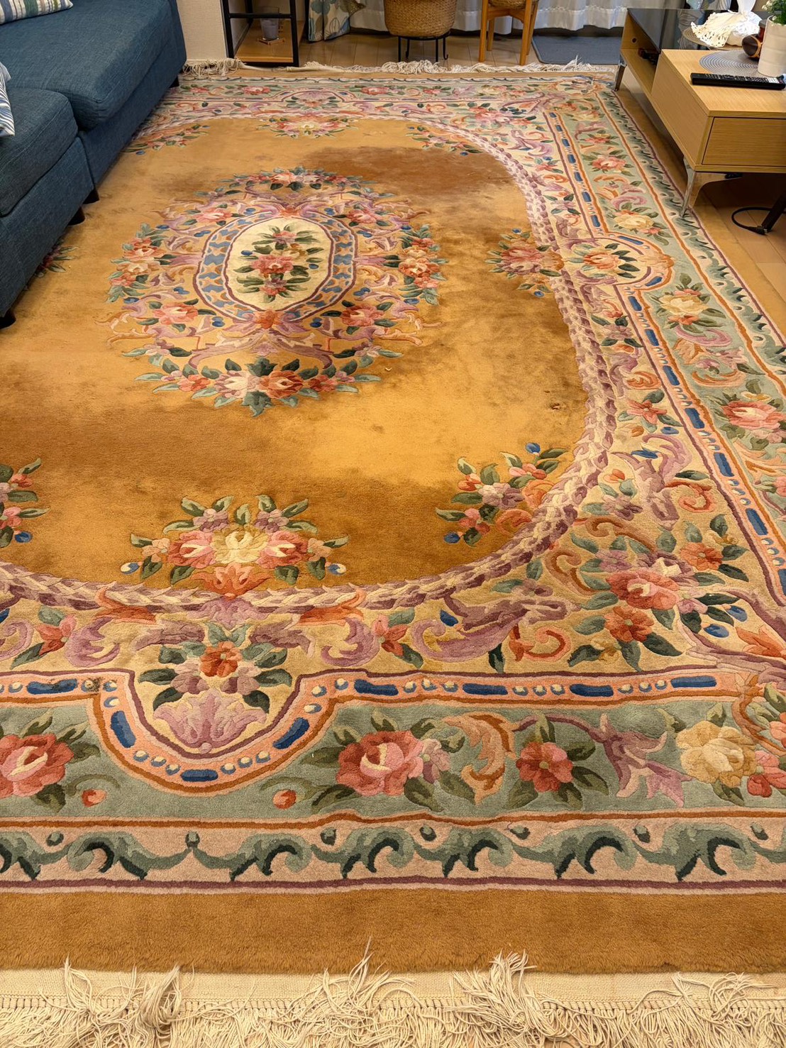 たまたま天気が良い日が続いてできて2週間以内仕上げでした。中国ウール段通は分厚くて乾くのに時間がかかるので大阪まで取りに行ってすぐに洗いました。2025年の11月末~12月初めの乾燥した天気が味方してくれました。大至急品はできる限り対応致しますが、天候や絨毯の種類、加工内容によってはお時間がかかってしまうこともございます。