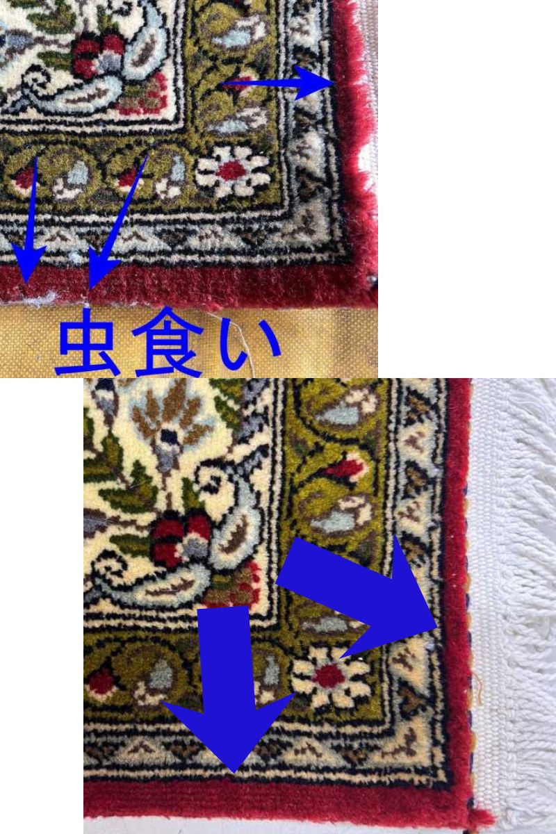 ペルシャのクムウールは本当にいい絨毯だなぁといつも思っています。何故良いかというとウールの質が本当にいいんです!そしてそのような上質なウール程虫食いに遭いやすい。