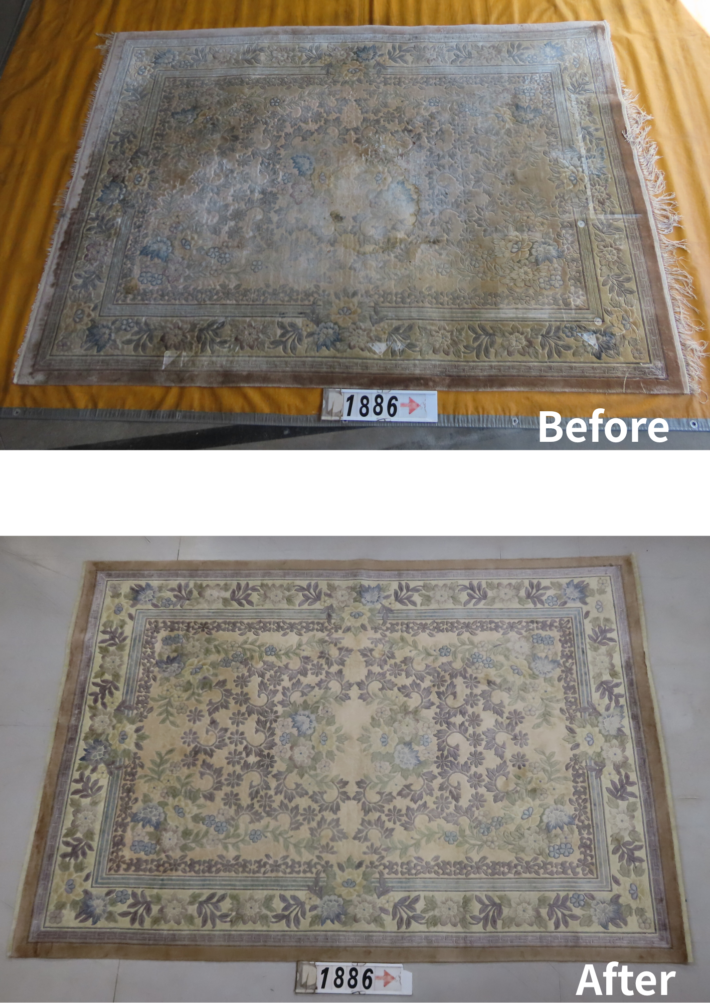 15年ぶりの洗浄】ペットのおしっこ汚れもスッキリ!中国シルク絨毯の強力脱臭&色修理事例(埼玉県川口市T様)