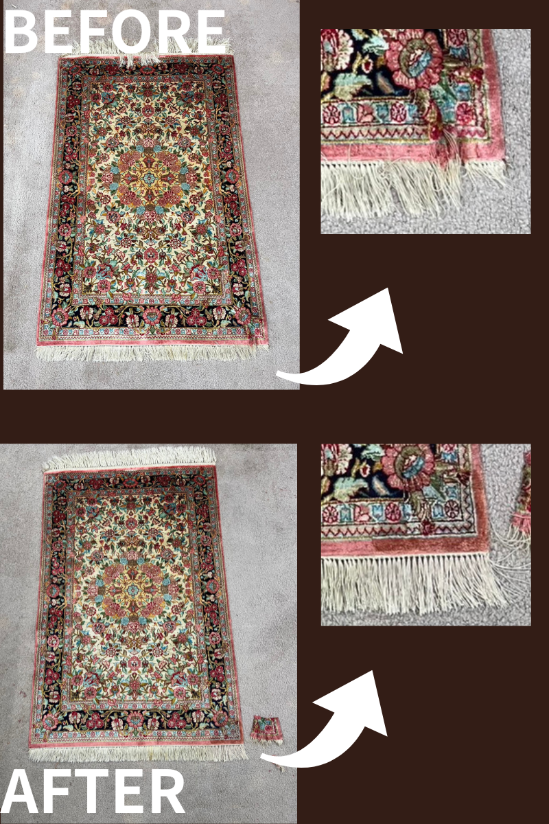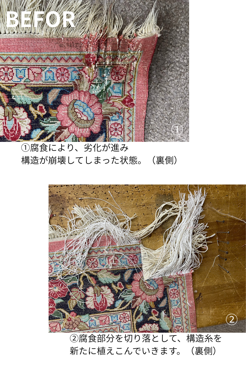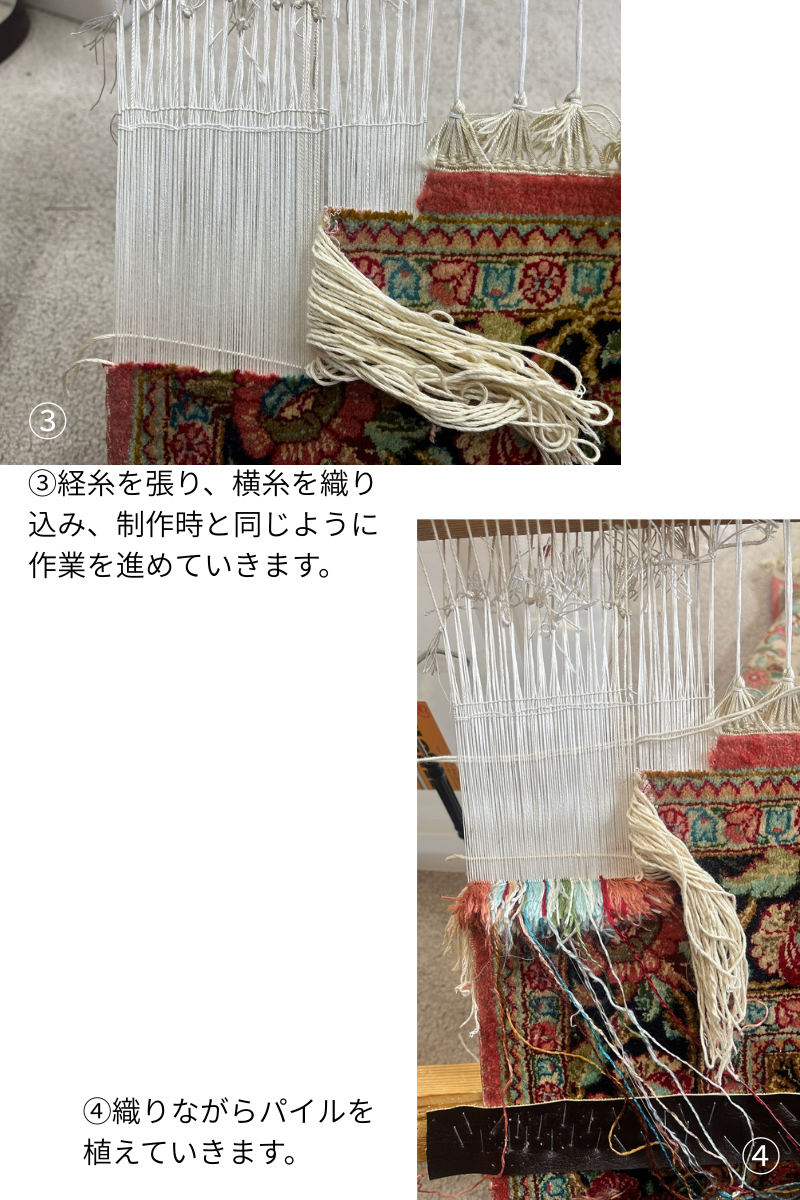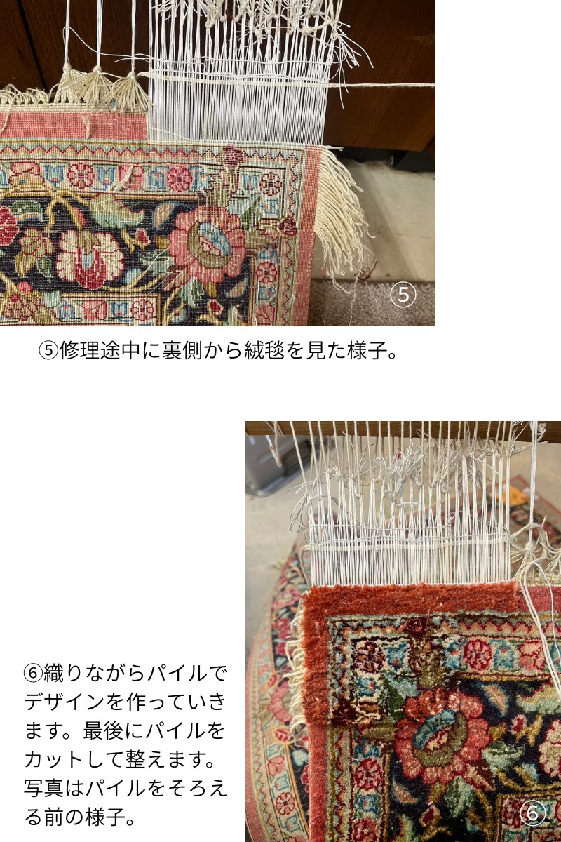 カルテにて織り直し修理を提案させていただきましたが、絨毯のプロでなければ「どこまで直るのかな?」って不安ですよね?