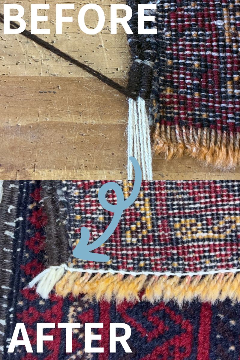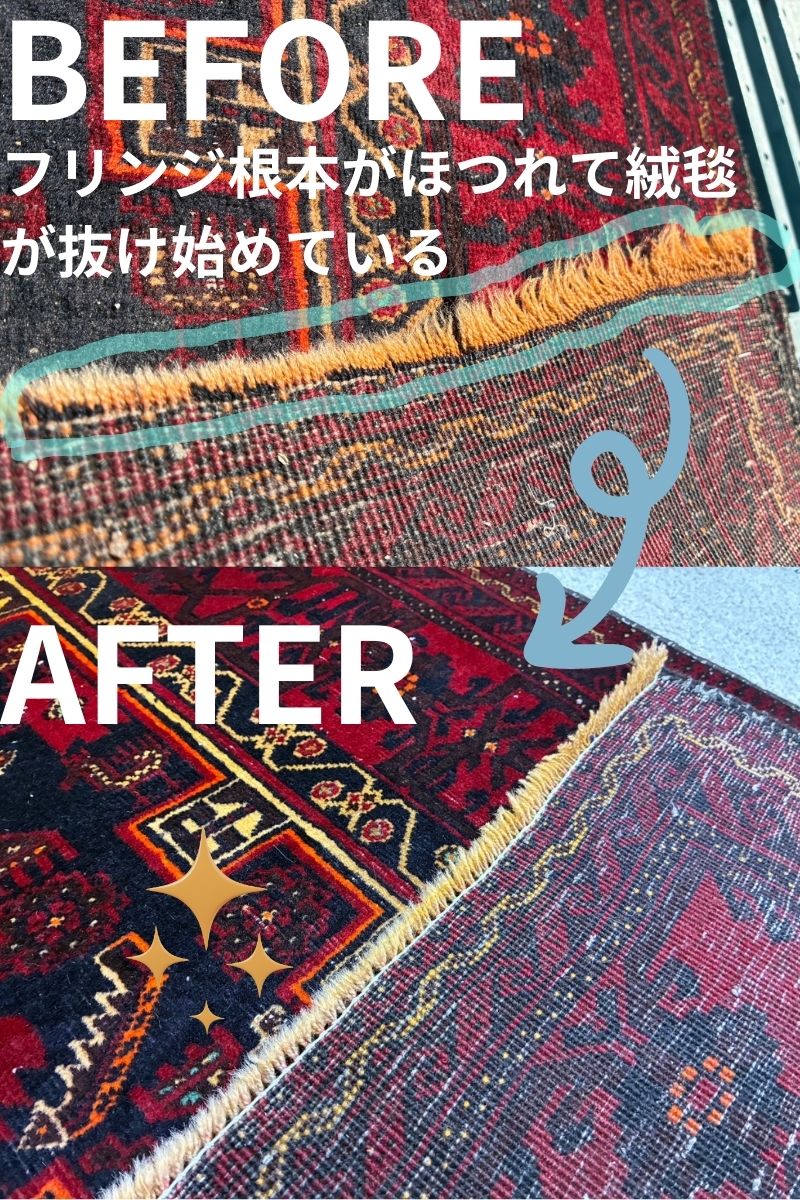 - クリーニング・ONE COATING・フリンジ根本の縛り補強修理・シラゼの織直し修理